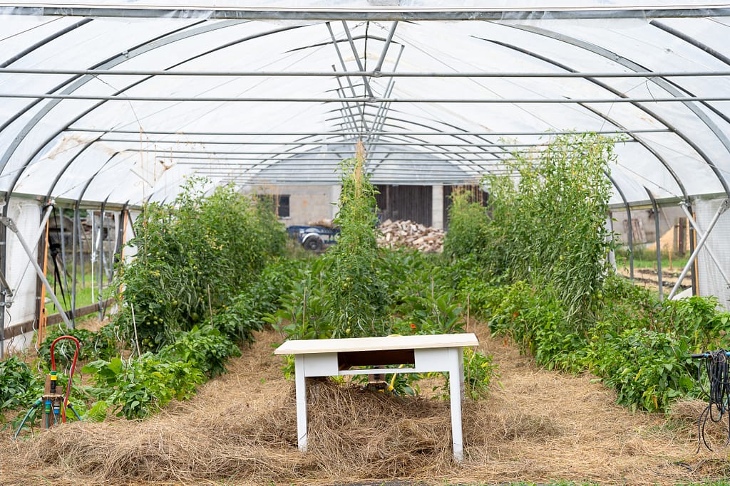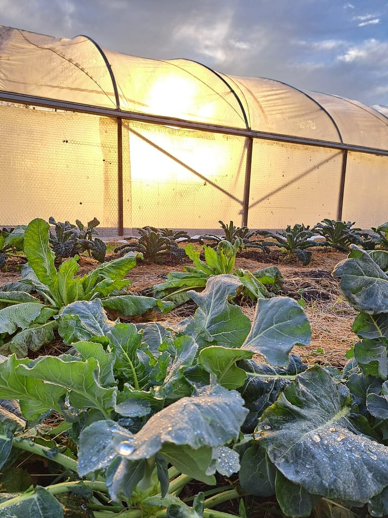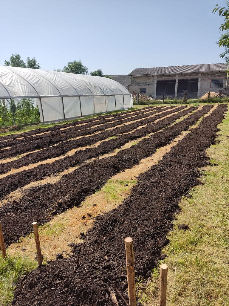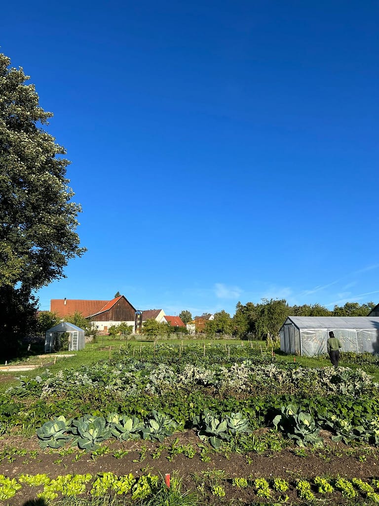 Andere, ebenfalls sehr zentrale Flächen hinter den Gebäuden auf der anderen Straßenseite ergänzen den Anbau. Inzwischen sind wir bei 4000 Quadratmeter Anbaufläche, mit 2 Folientunneln, die zusammen 450 Quadratmeter Fläche für den geschützten Anbau bieten. Der Verein pachtet diese Flächen und einen Teil der dort stehenden Gebäude zur Ausgabe der Gemüsekisten, als Geräte- und Materialschuppen, und für alles was sonst im laufenden Betrieb so nötig ist.