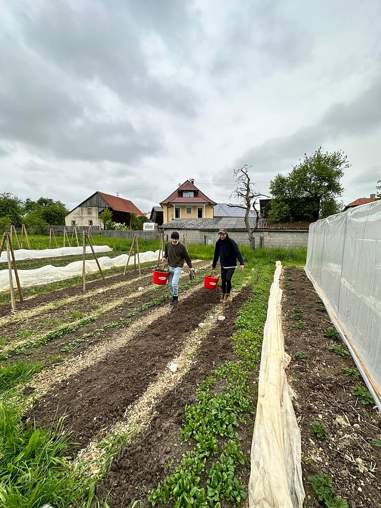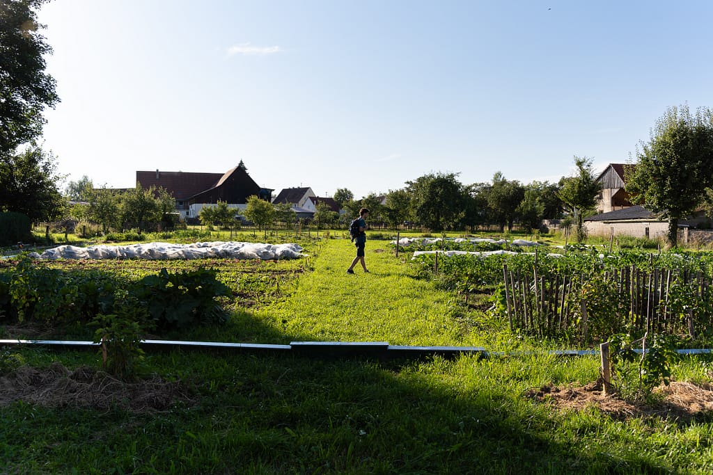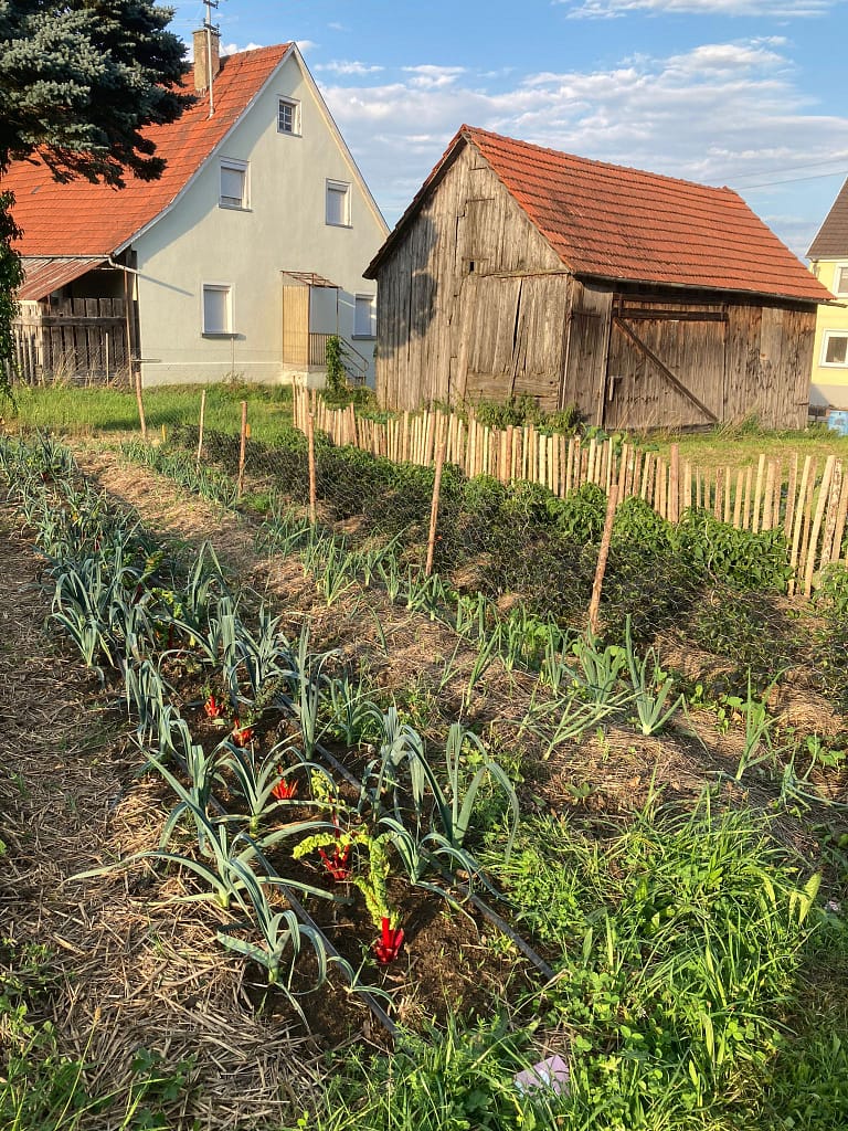 Unser Ort, Inneringen, hat sich über die Jahre in alle Richtungen ausgedehnt. Und überall sind (Bau)Lücken geblieben: aus verschiedensten Gründen. Auch unsere erste Anbaufläche lag daher „mitten im Ort“: 1500 Quadratmeter, bisher Grünland, direkt an der zentralen Gammertinger Straße. Sogar mit Anschrift: die Gammertinger Straße 11, neben unserem Abholraum (und Lager, und Gästewohnung) in der Gammertinger Straße 9.