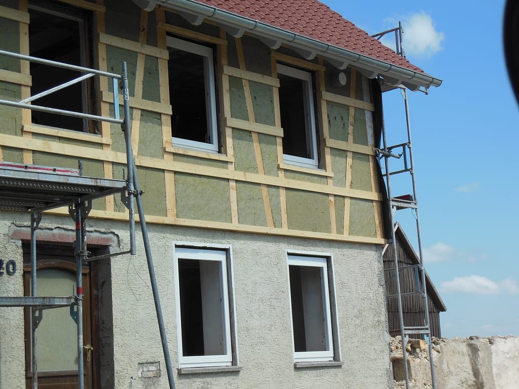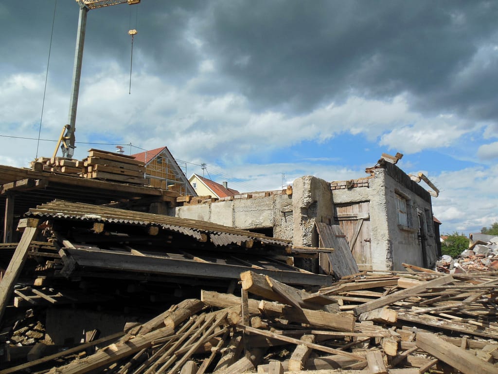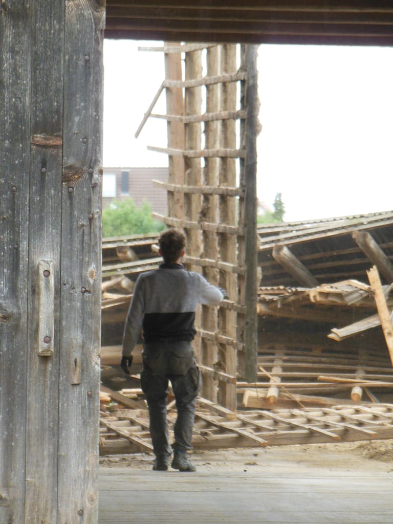 Inzwischen sieht es hier etwas anders aus als auf dem Bild: die große, leider (sehr) baufällige Scheune musste 2021 abgerissen werden. Die ältesten Gebäudeteile waren zu diesem Zeitpunkt etwa 120 Jahre alt. Auch das Haus wurde renoviert. 3 Jahre dauerte es bis zum Einzug: ein Kraftakt. Auf dem Hof ist wieder Leben eingekehrt – zusammen mit ihren Töchtern wohnen Nadine und Philipp jetzt hier. Die Solawi pachtet Teile des Hofs für den Gemüseanbau.