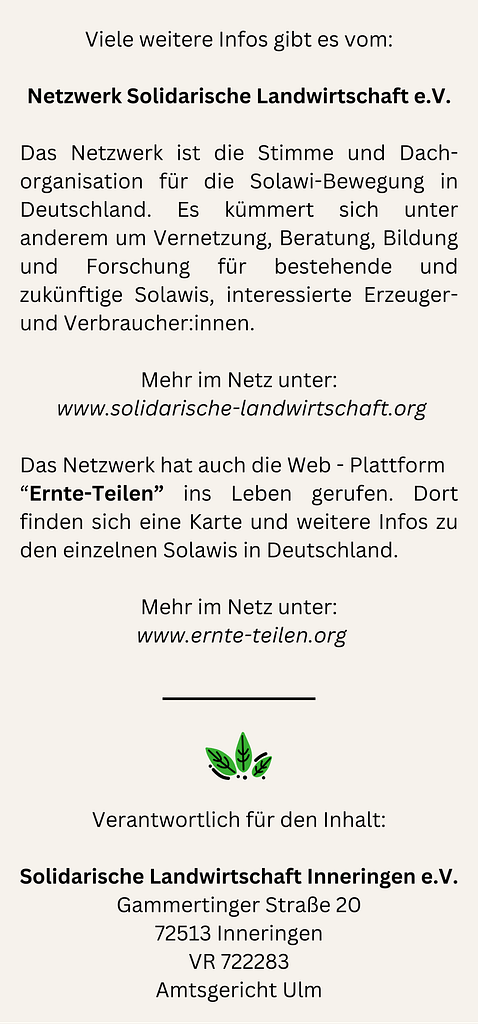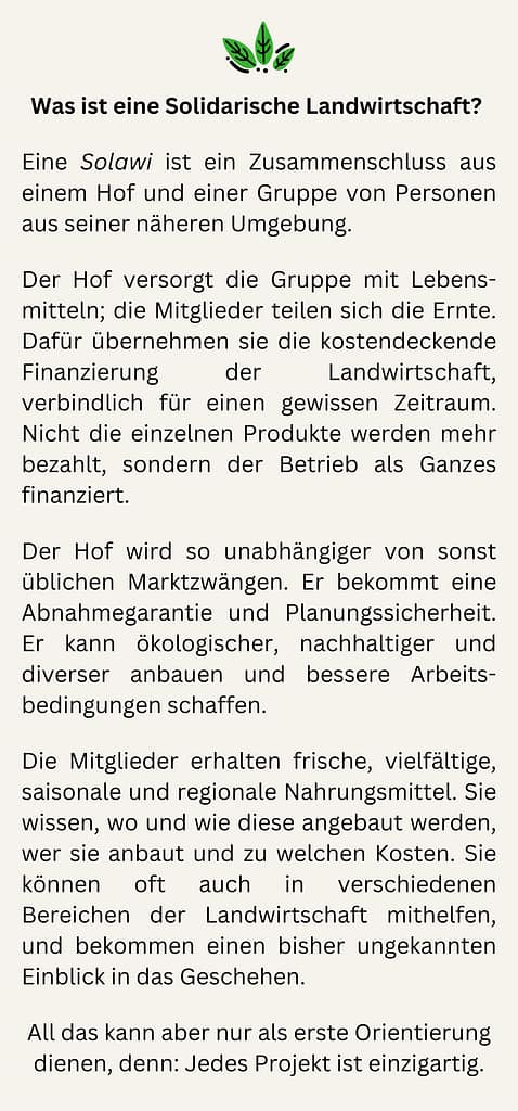 Zum Flyer gehört inzwischen eine vierte Seite, bzw. ein „Einleger“, der das Prinzip Solawi in Kurzform erklärt: