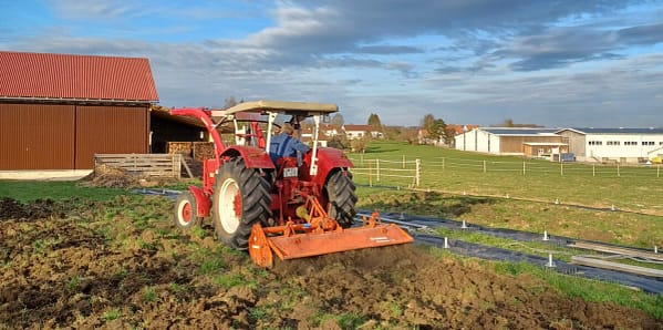 Im gleichen Zug ging es mit der Beetvorbereitung weiter. Nicht nur im alten Garten konnten wir die Beete fräsen und Wege anlegen; auch die neuen Flächen konnten dank des trockeneren Wetters endlich gefräst werden.